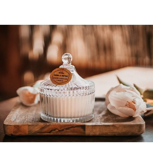 Ręcznie tworzona świeca zapachowa wykonana ze 100% wosku sojowego ekologicznego, niemodyfikowanego genetycznie, wolnego od herbicydow, pestycydów, drewnianego knotu i wysokiej klasy kompozycji zapachowych.